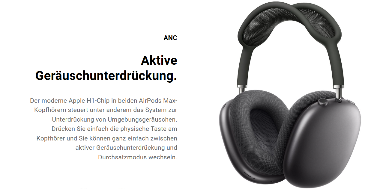 - Die Aktive Geräuschunterdrückung blendet Außengeräusche aus, damit du ganz in deine Musik eintauchen kannst