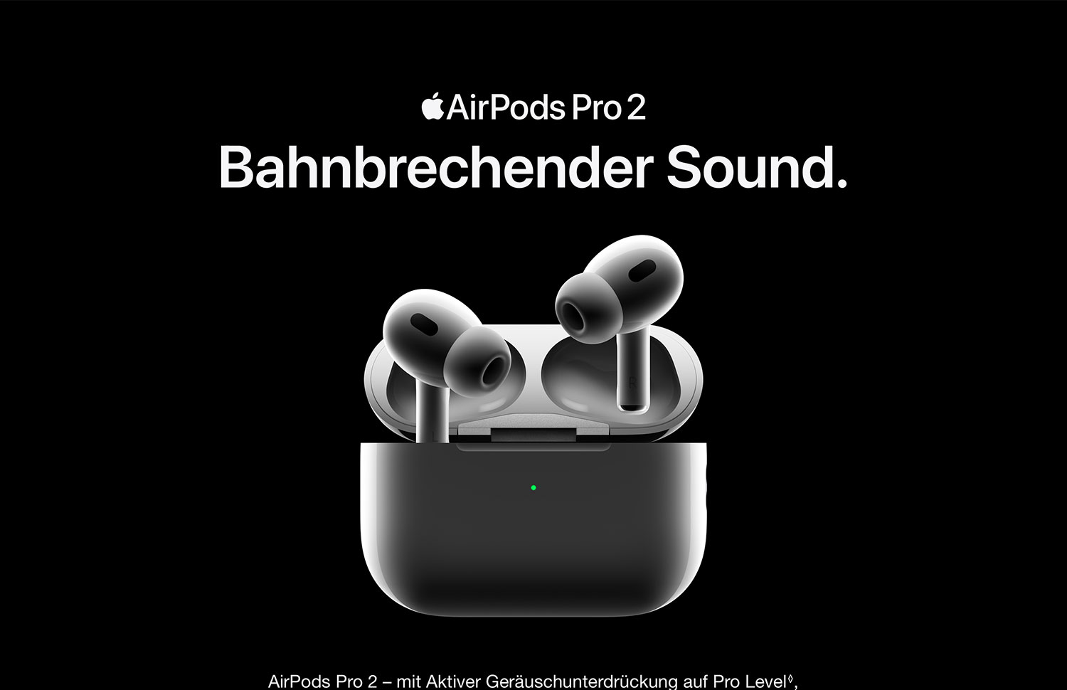 - Der von Apple entwickelte H2-Chip, die treibende Kraft hinter den AirPods Pro, steigert die fortschrittliche Audioleistung noch weiter. Von der intelligenten Geräuschunterdrückung bis hin zum hervorragenden dreidimensionalen Klang und der Akkulaufzeit verbessert es die besten Funktionen der AirPods Pro erheblich.