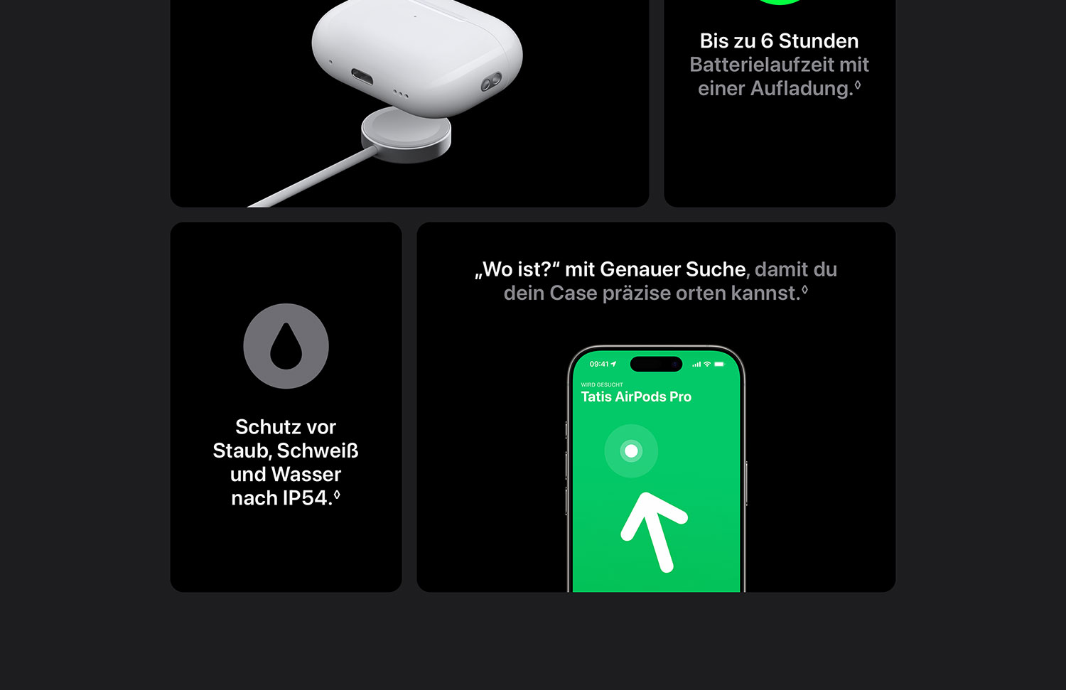 - Bis zu 6 Stunden Hörzeit mit aktivierter aktiver Geräuschunterdrückung – 33 % mehr als AirPods Pro (1. Generation).