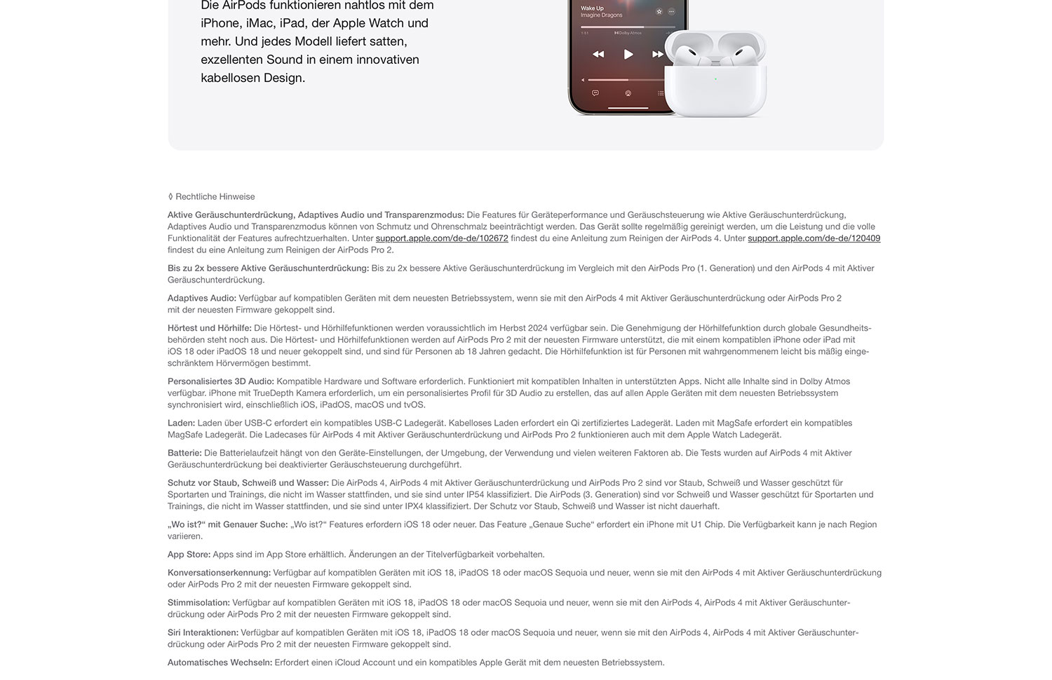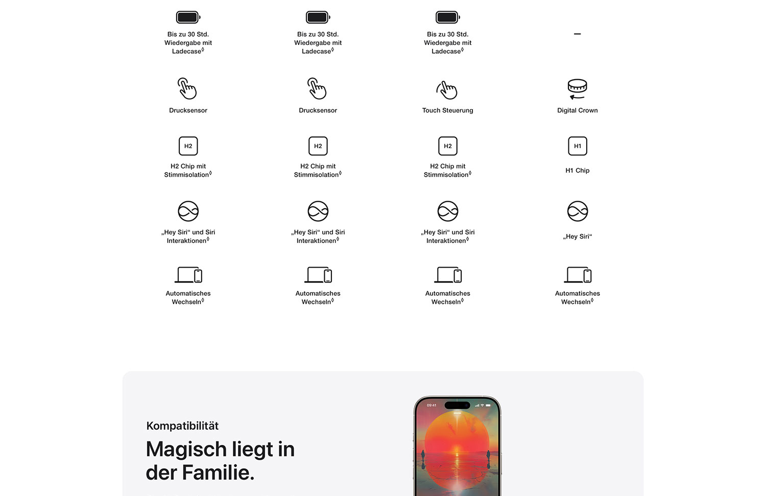 - Die In-Ear-Erkennung und die automatische Umschaltung zwischen den Geräten sorgen für einen reibungslosen Ablauf.