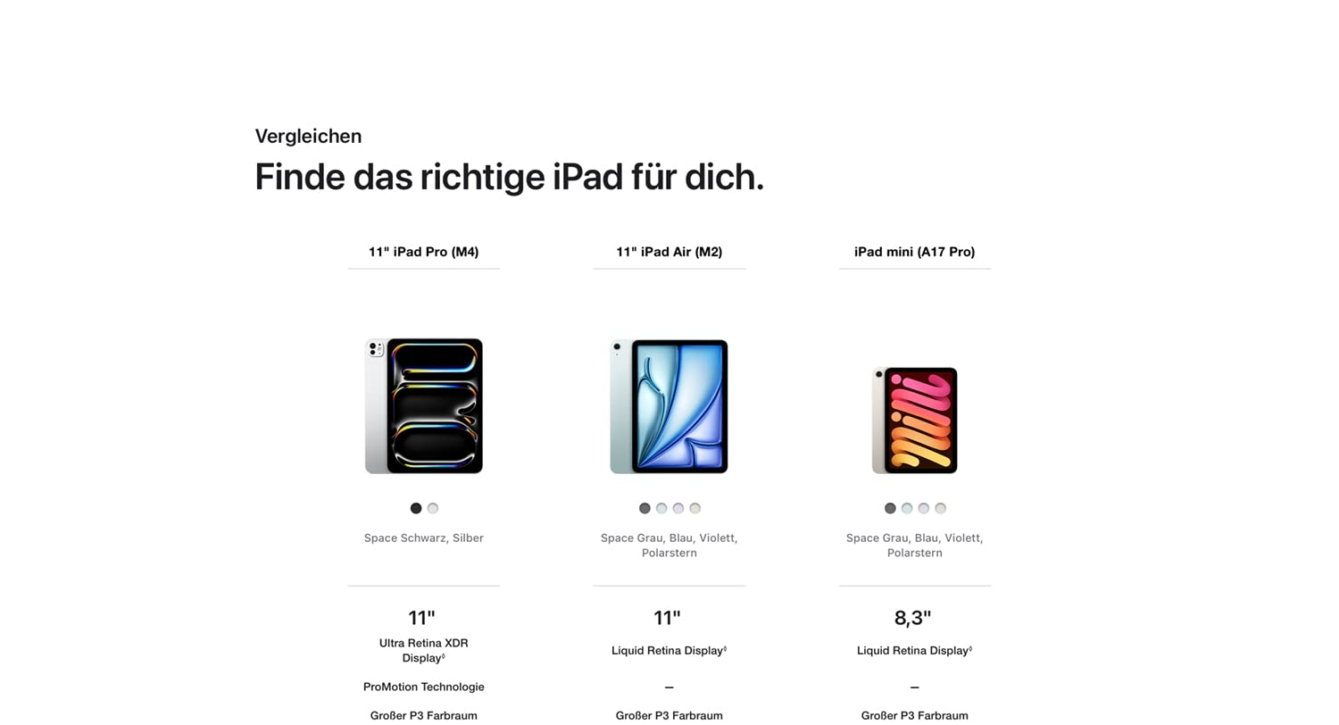 Apple iPad mini (A17 Pro, 7th Generation, 8,3 Zoll, Wi-Fi, 512 GB) - Polarstern Apple iPad mini (A17 Pro, 7th Generation, 8,3 Zoll, Wi-Fi, 512 GB) - Space Grau Apple iPad mini (A17 Pro, 7th Generation, 8,3 Zoll, Wi-Fi, 512 GB) - Violett Apple iPad mini (A17 Pro, 7th Generation, 8,3 Zoll, Wi-Fi, 512 GB) - Blau