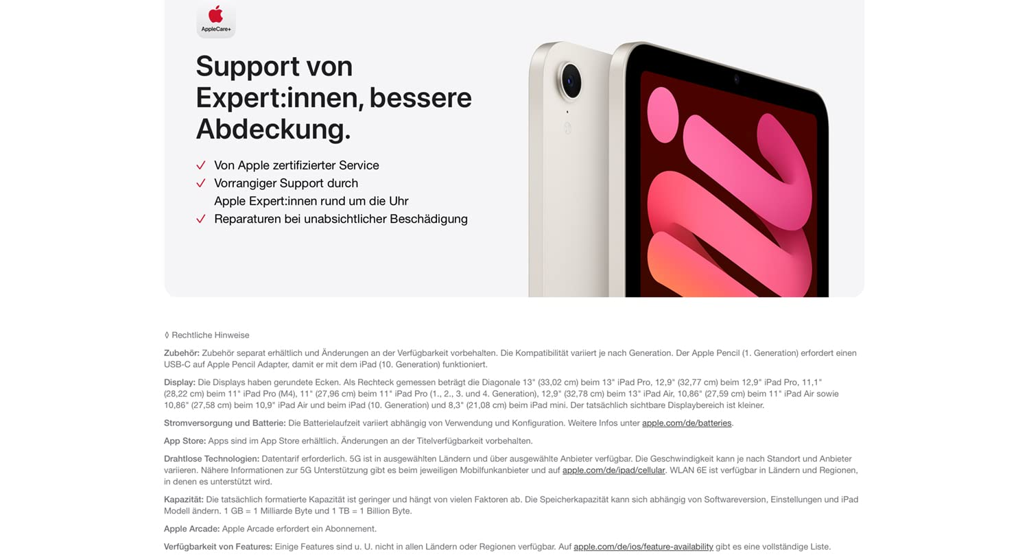 • APPLE PENCIL UND SMART FOLIO – Der Apple Pencil Pro macht aus dem iPad mini eine immersive Leinwand für Zeichnungen und das beste Gerät für Notizen. Der Apple Pencil (USB C) ist auch mit dem iPad mini kompatibel.