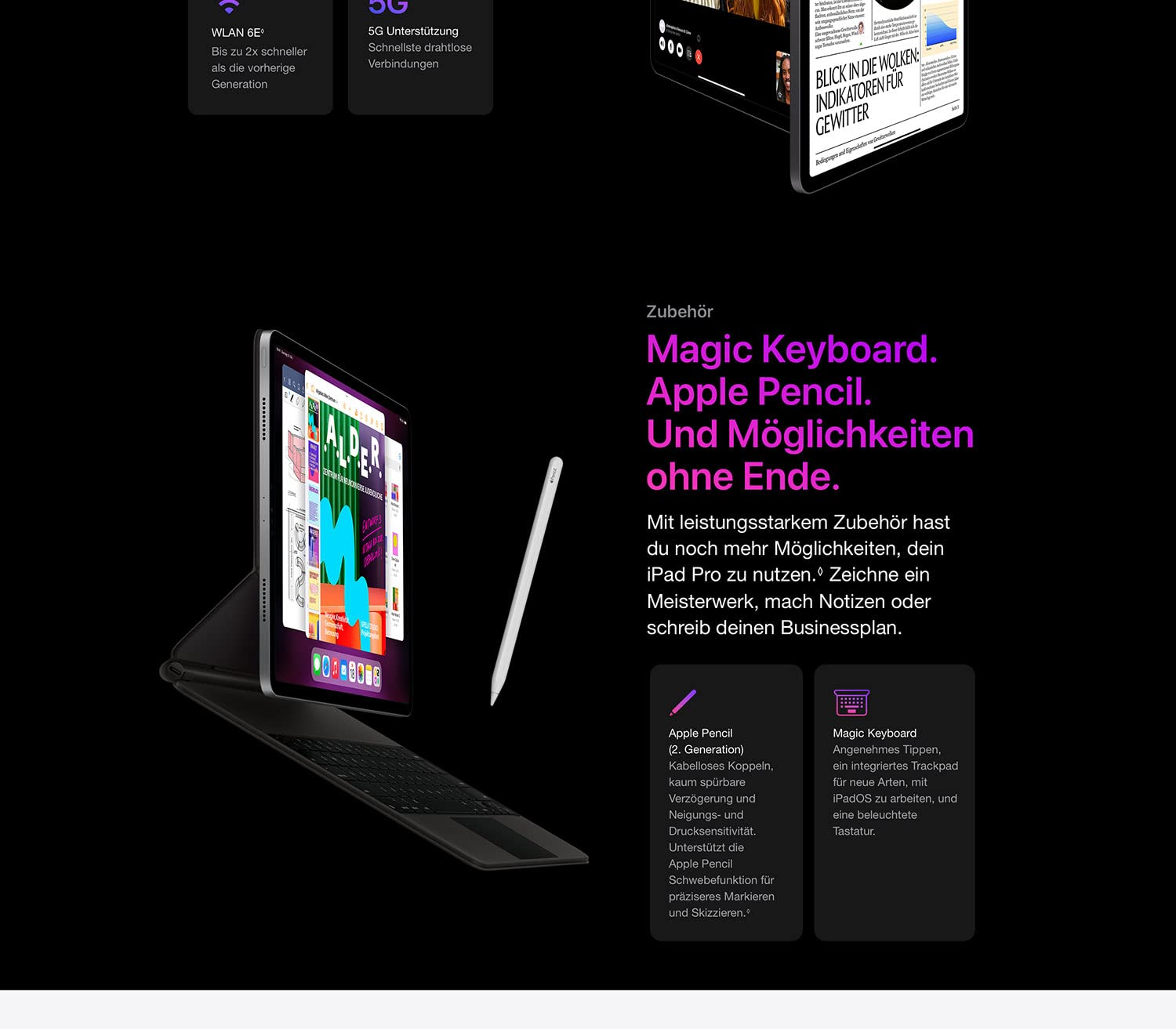 • Kompatibel mit Apple Pencil (2. Generation), Magic Keyboard und Smart Keyboard Folio