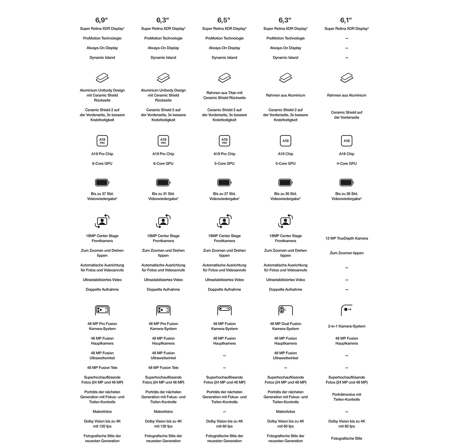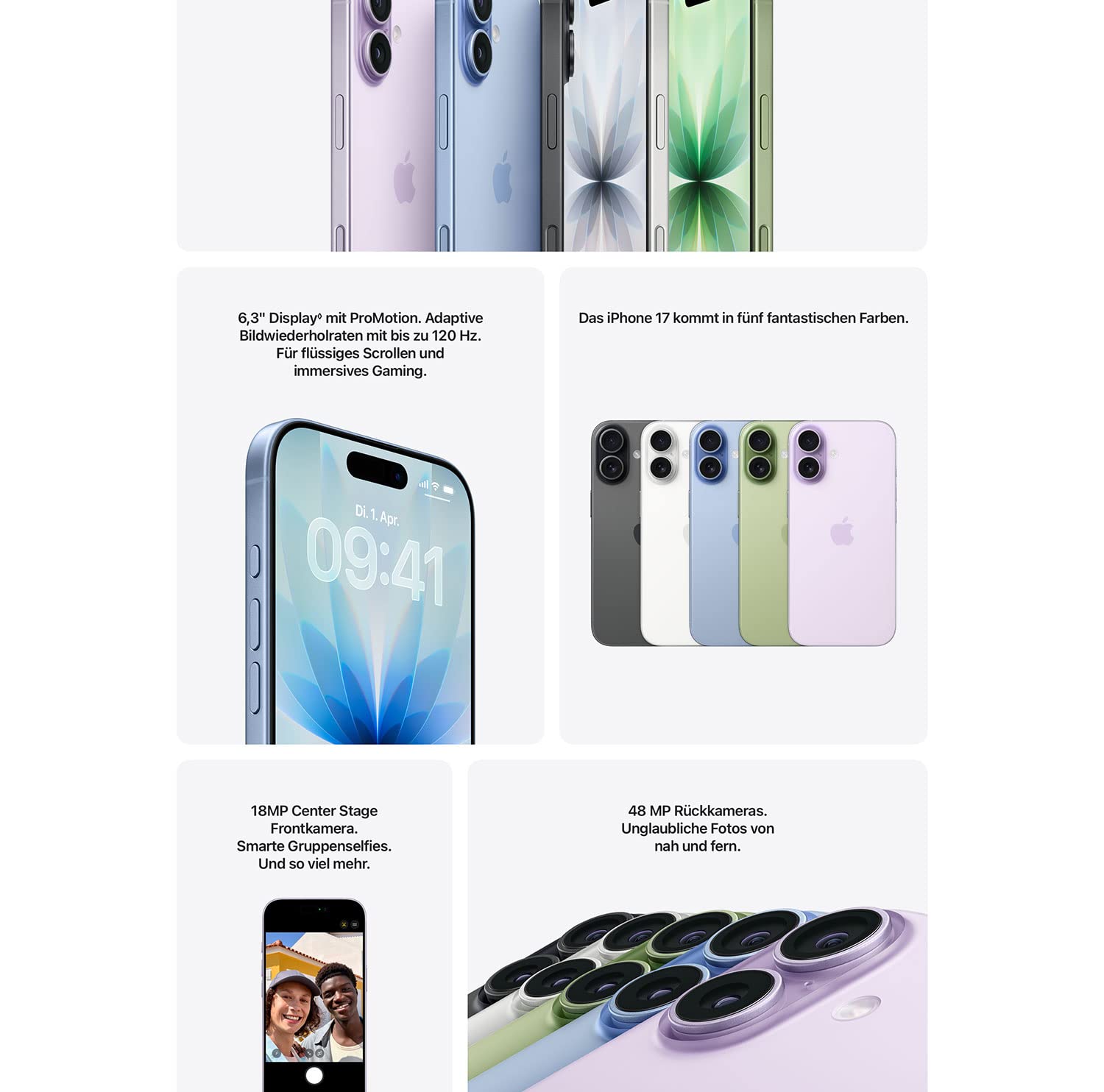 • 6,3" DISPLAY MIT PROMOTION. HELLER. BRILLANT. − Flüssiges Scrollen mit ProMotion bis zu 120 Hz, besserer Kontrast im Freien mit 3.000 Nits Spitzenhelligkeit und 33 % weniger Reflexionen.
