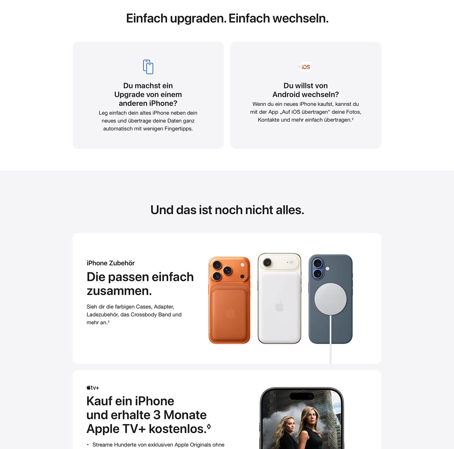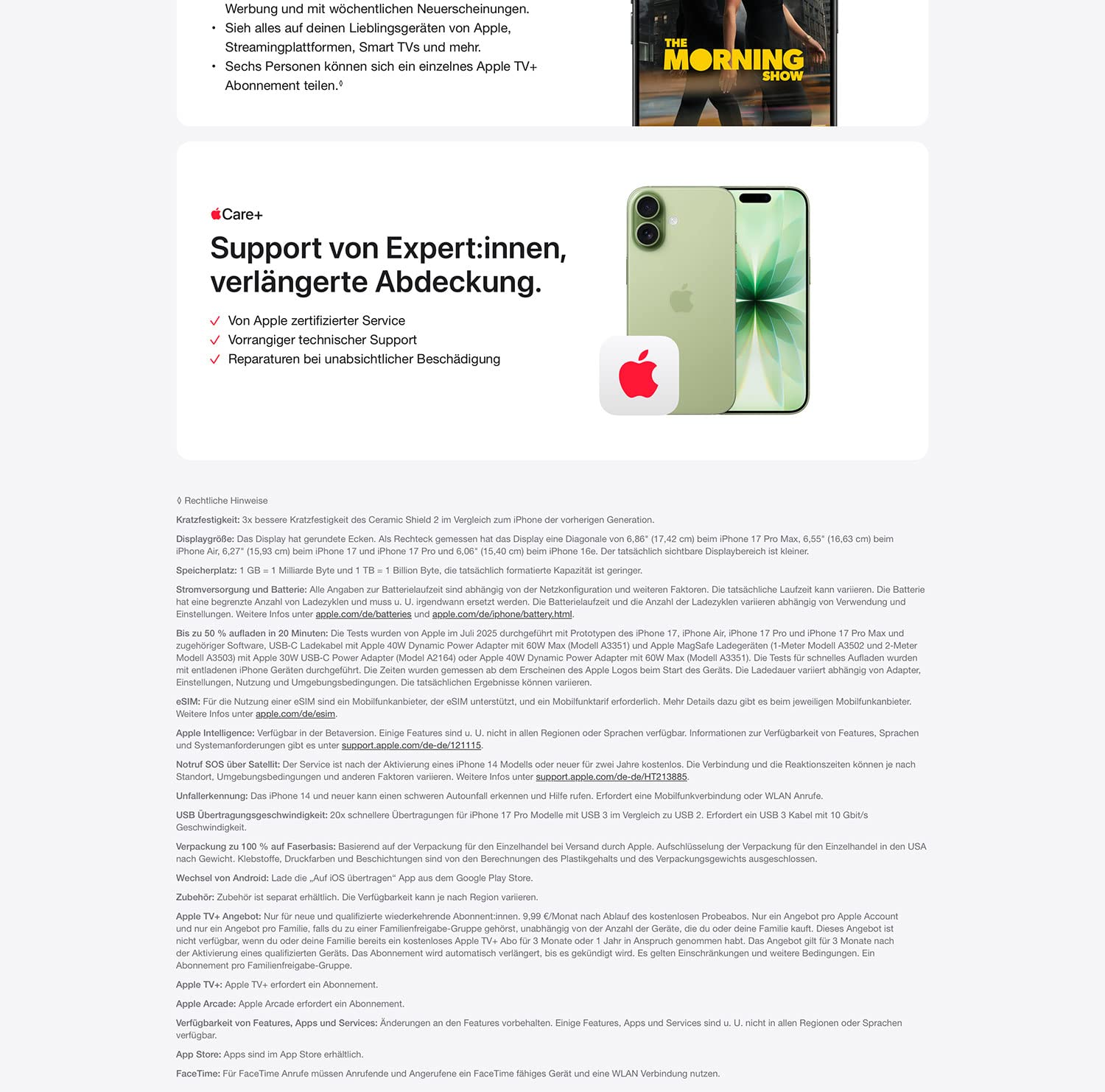 • SATELLITENFEATURES − Wenn du einen Notdienst kontaktieren musst, aber weder Netz noch WLAN hast, kannst du Notruf SOS über Satellit nutzen. Und bei einem schweren Autounfall kann das iPhone den Notruf kontaktieren, wenn du es nicht kannst.