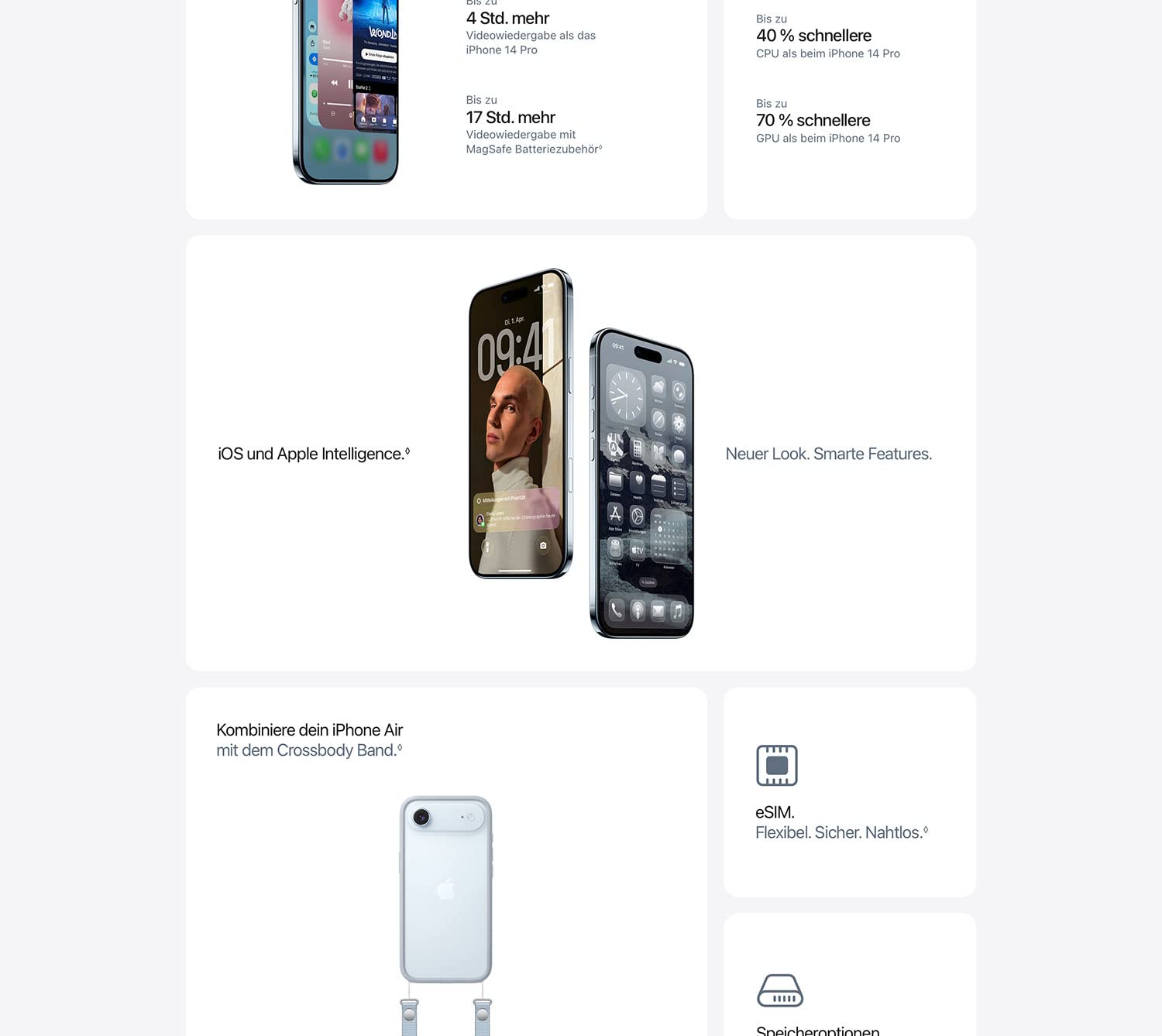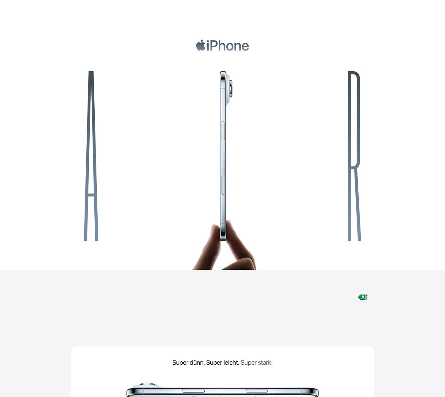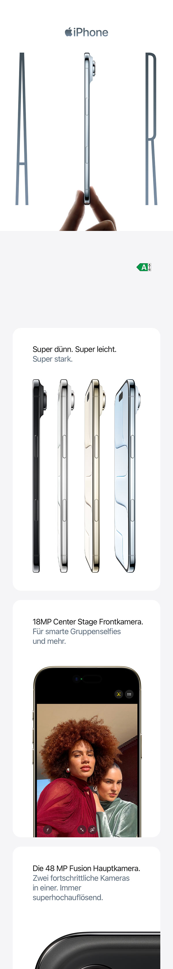 - SUPER DÜNN. SUPER LEICHT. SUPER STARK. − Das dünnste iPhone aller Zeiten mit der Power eines Pro Chips. Mit 5,6 mm ist das neue iPhone Air so unfassbar dünn und leicht, dass es kaum zu fassen ist.