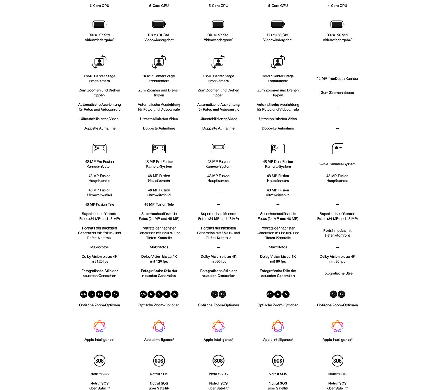 - ZWEI FORTSCHRITTLICHE KAMERAS IN EINER − 48 MP Fusion Kamera-System mit 2x Zoom in optischer Qualität. Mach einfach perfekte Aufnahmen – direkt von dort, wo du stehst. 18MP CENTER STAGE FRONTKAMERA − Flexible Bildausschnitte. Smarte Gruppenselfies, Videos mit doppelter Aufnahme von Front- und Rückkamera und mehr.