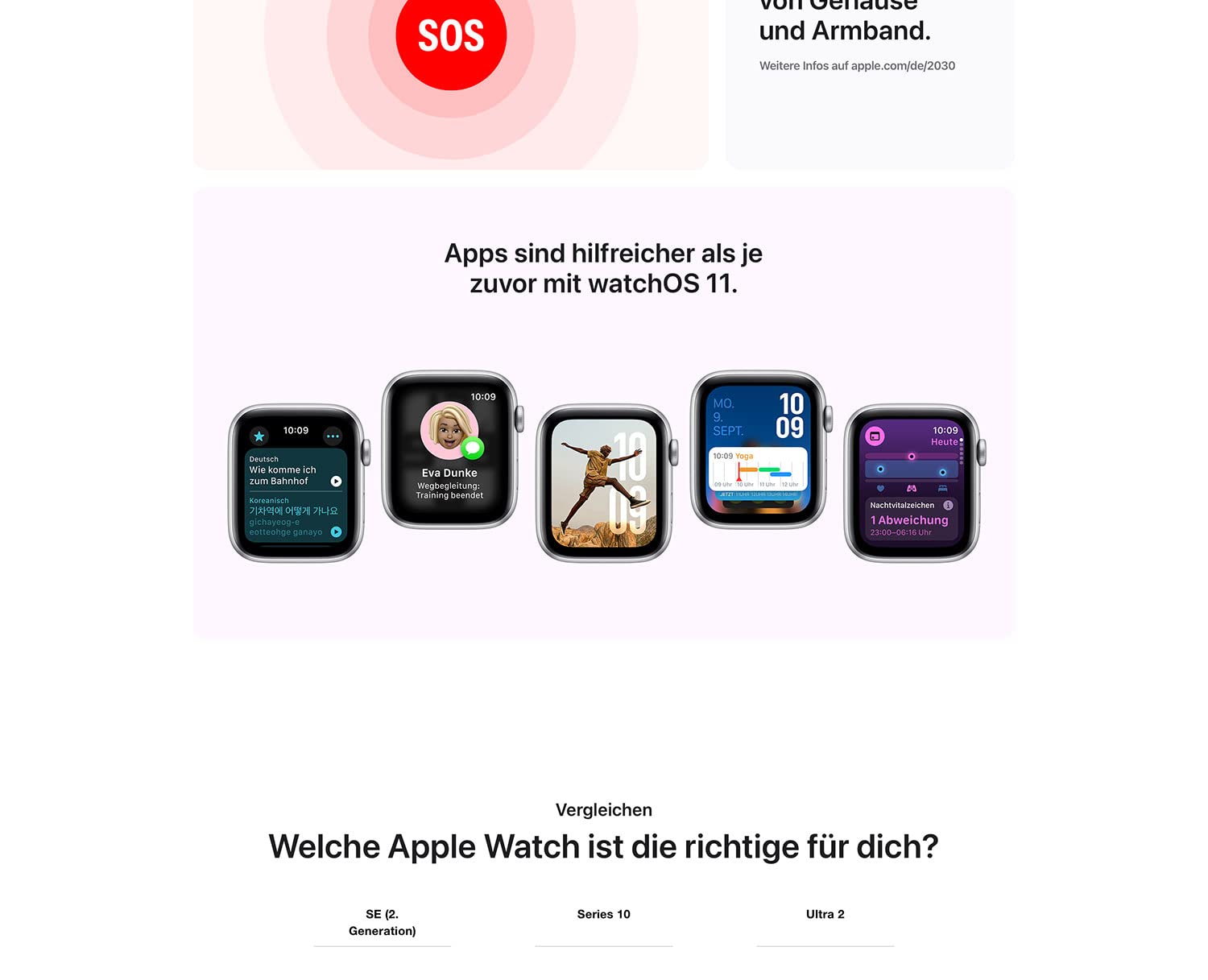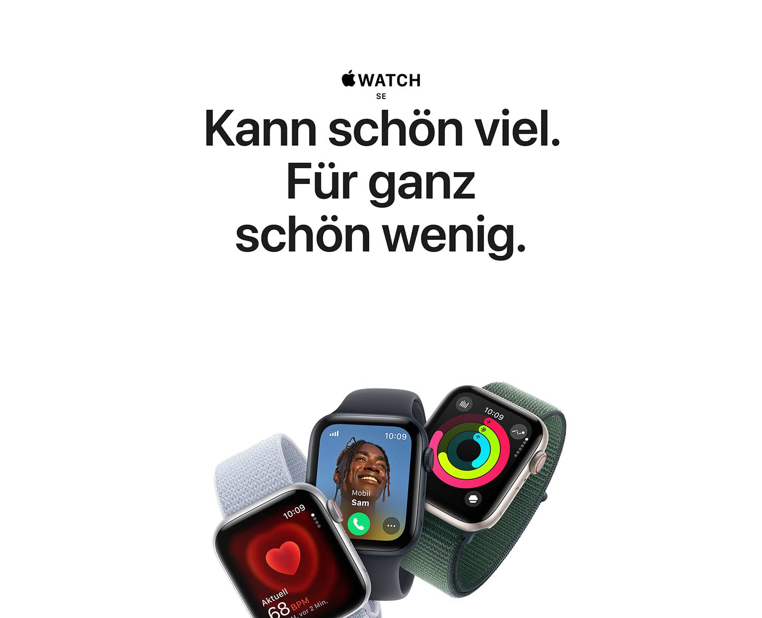 - WARUM APPLE WATCH SE – Alles, was du brauchst, um motiviert, aktiv, verbunden und sicher zu bleiben und deine Gesundheit zu tracken. watchOS 11 bringt mehr Intelligence, Personalisierung und Konnektivität. Mit Features wie Sturzerkennung und fortschrittlichen Trainingsmesswerten hat die Apple Watch SE ein unglaubliches Preis-Leistungs-Verhältnis.