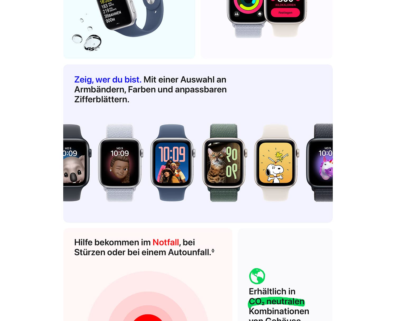 - CO₂ NEUTRAL – Die Apple Watch SE (2. Generation) ist CO₂ neutral, wenn sie mit ausgewählten Armbändern kombiniert wird.
