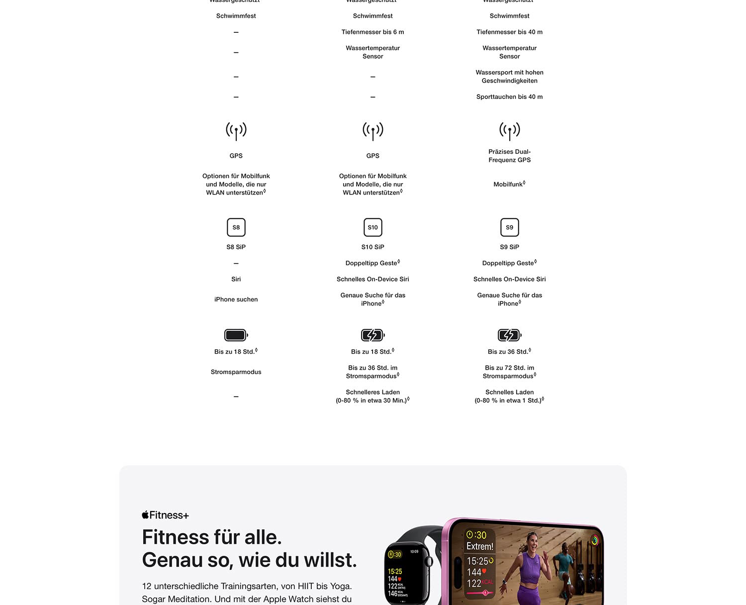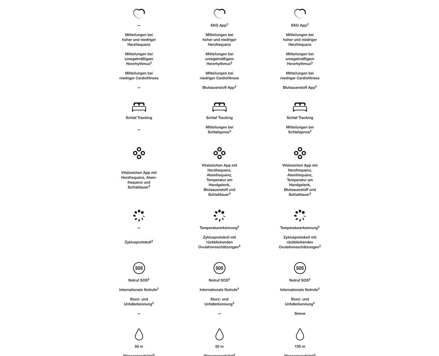 - FEATURES FÜR GESUNDHEIT UND SICHERHEIT – Erfahre mehr über deine Gesundheit, inklusive Mitteilungen, wenn du einen unregelmäßigen Herzrhythmus* oder eine ungewöhnlich hohe oder niedrige Herzfrequenz hast. Erhalte Hilfe, wenn du sie brauchst, mit Unfall¬erkennung, Sturz¬erkennung und Notruf SOS.* Benachrichtige mit Wegbegleitung automatisch deine Wunschperson, wenn du an deinem Ziel ankommst.