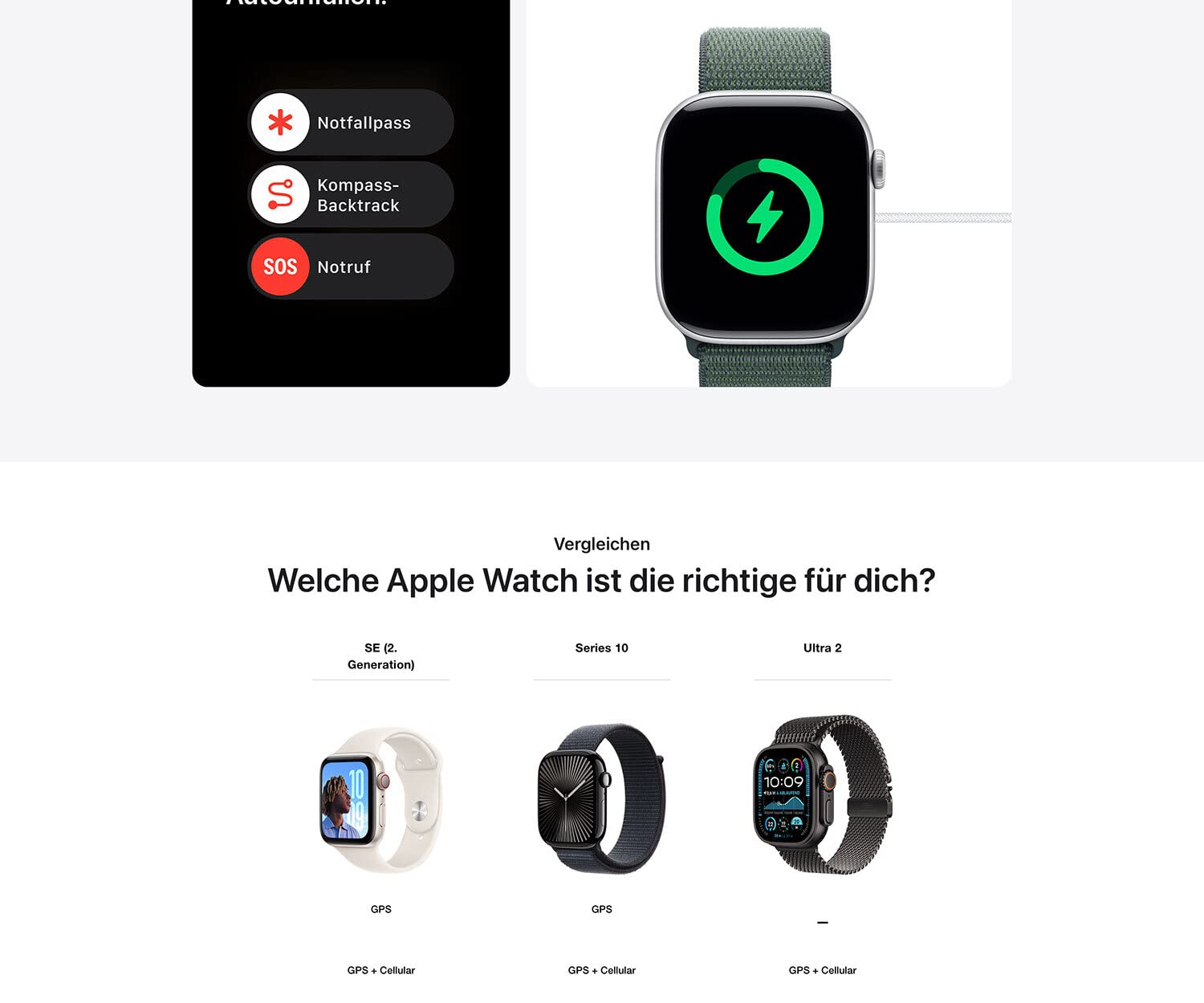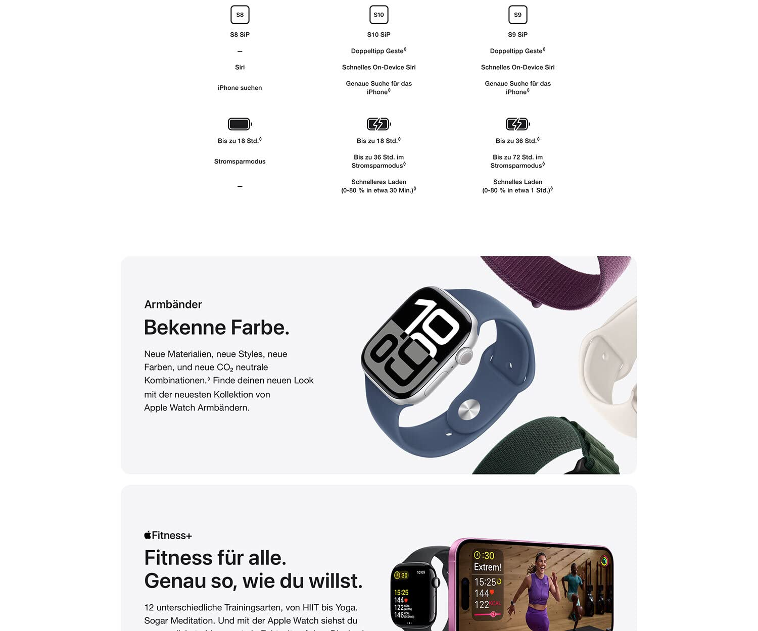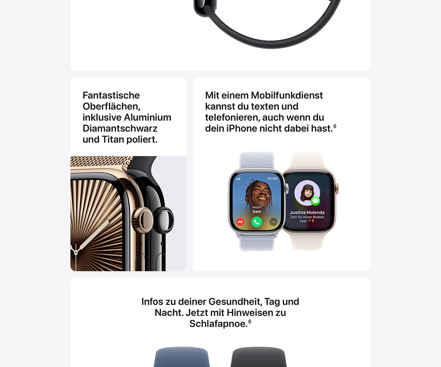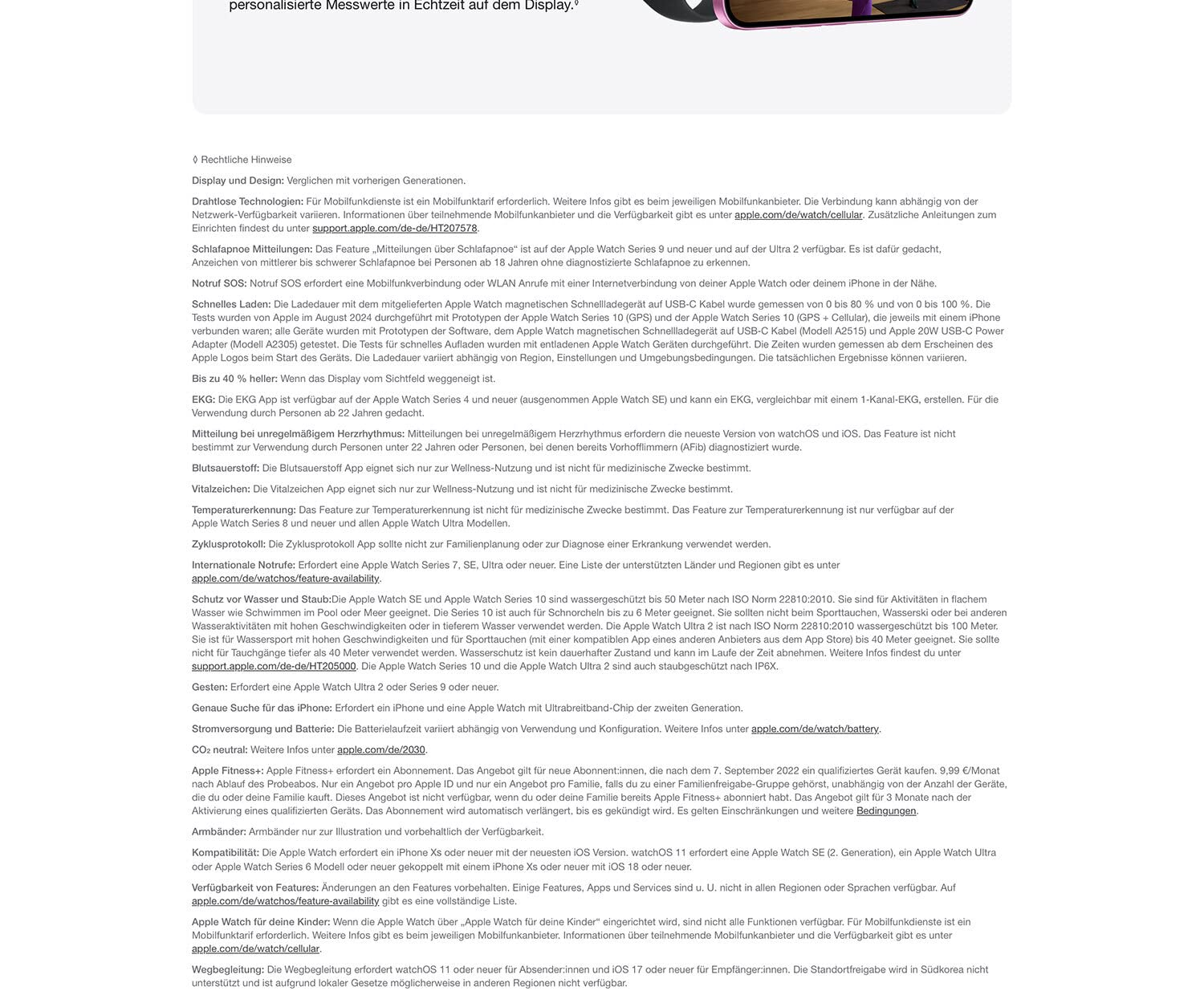 - CO₂ NEUTRAL – Die Apple Watch Series 10 ist CO₂ neutral, wenn sie mit ausgewählten Armbändern kombiniert wird. Weitere Infos zum Engagement von Apple für die Umwelt unter apple.com/de/2030.