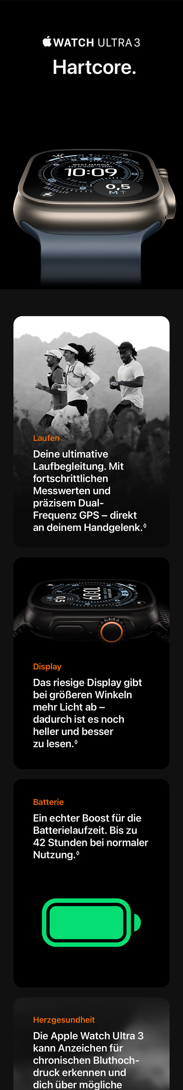 - WEGWEISENDE ARMBÄNDER – Für die Ultra 3 gibt es vier elegante, vielseitige Armbandstyles mit unendlich vielen Möglichkeiten für alles, was du täglich machst – egal ob du dich auspowerst oder ausgehst.