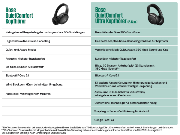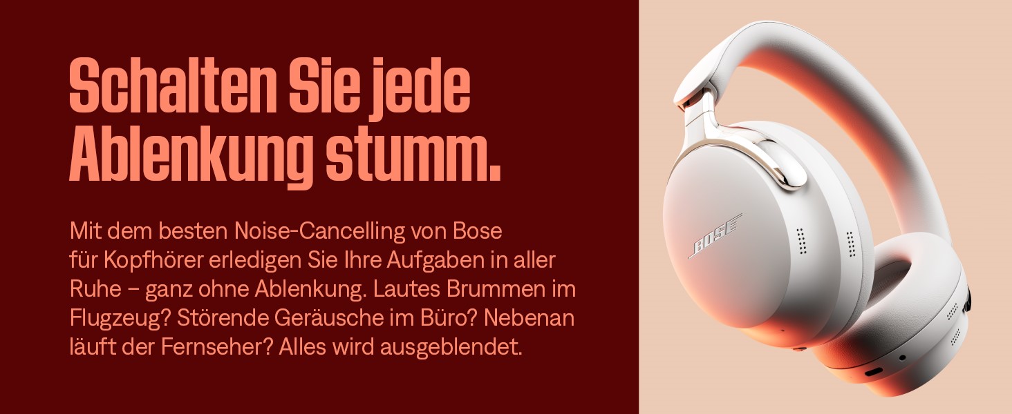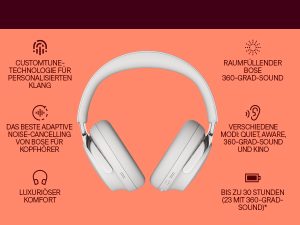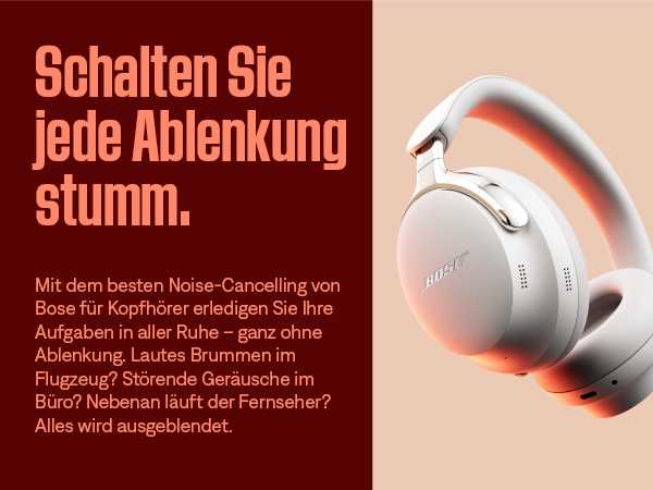 - NOISE-CANCELLING KOPFHÖRER: Genießen Sie Boses bestes Noise-Cancelling für Kopfhörer im Quiet-Modus, schalten Sie in den Aware-Modus, um Ihre Umgebung besser wahrzunehmen oder kombinieren Sie im Immersion-Modus Noise-Cancelling und Bose 360-Grad-Sound.