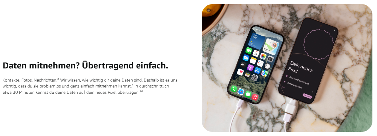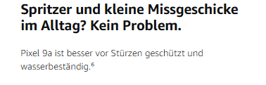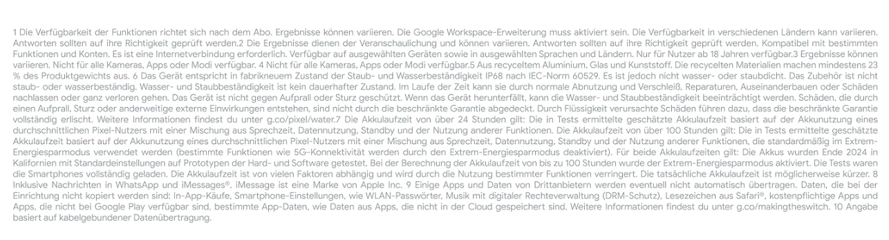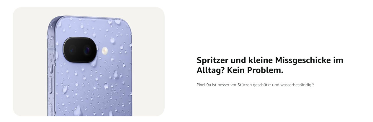- Der zuverlässige Akku für den ganzen Tag. Der intelligente Akku des Pixel 9a bietet mehr als 24 Stunden Laufzeit. Du brauchst noch mehr? Wenn du den Extrem-Energiesparmodus direkt nach dem Aufladen aktivierst, reicht der Akku bis zu 100 Stunden.