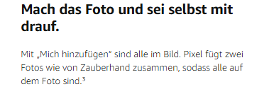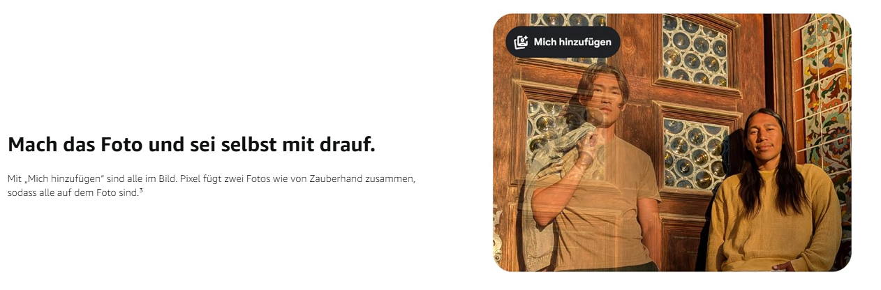 - Mach das Foto und sei selbst mit drauf. „Mich hinzufügen“ sorgt dafür, dass alle im Bild sind. Mach ein Foto von der Gruppe und tausche für ein weiteres mit einem anderen Fotografen. Pixel führt beide Fotos auf magische Weise zusammen.
