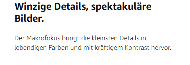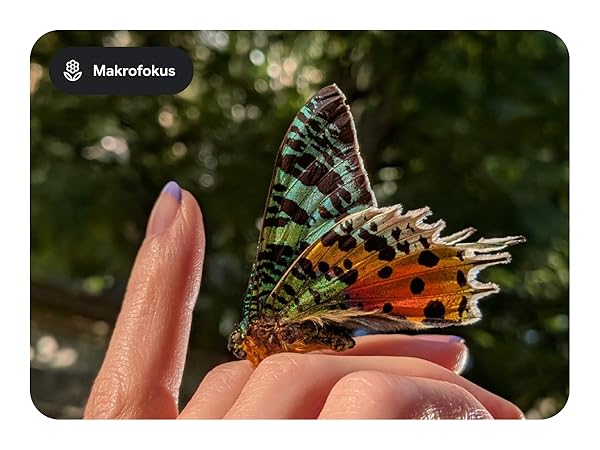 - Verwandle kleine Details in spektakuläre Bilder. Wenn du den Makrofokus verwendest, kannst du in lebendigen Farben und mit kräftigem Kontrast auch die kleinsten Details in Fotos und Videos hervorheben, zum Beispiel Regentropfen, Blumen oder Sprenkel.