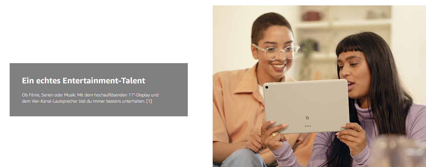 • Pixel Tablet überzeugt mit einem hochauflösenden 11 Zoll-Display mit brillanten Farben und automatischer Helligkeit – perfekt zum Streamen von Filmen und Serien oder zum Bearbeiten von Fotos und Videos