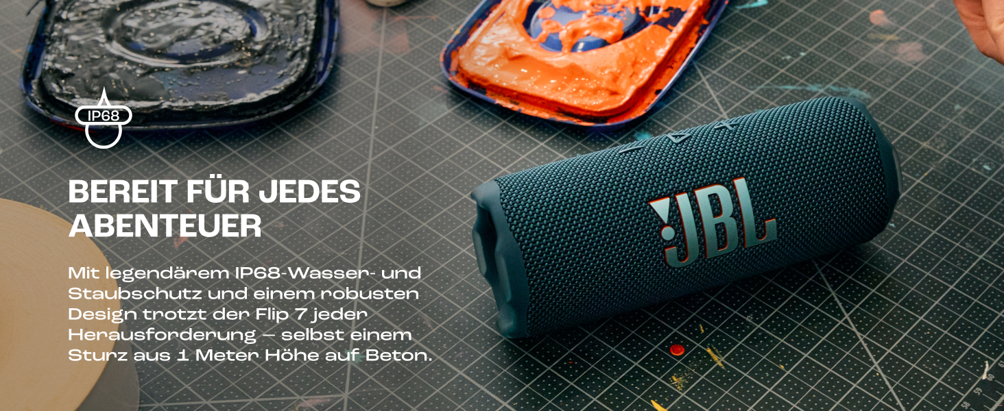 - Für jede Gelegenheit: Sturzsicher aus bis zu 1 Meter, wasserfest in der Dusche und unempfindlich gegen Staub - der JBL Flip 7 hält durch und sorgt für ununterbrochene Partystimmung
