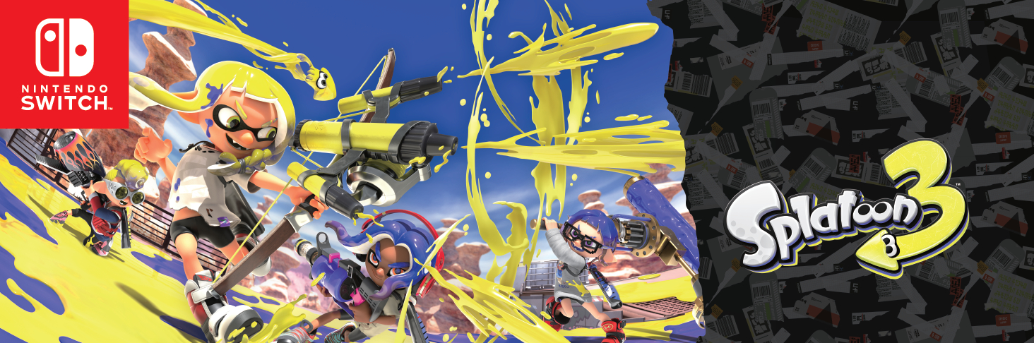 - Die Nintendo Switch OLED Model Splatoon 3 Edition-Konsole bietet Designinspirationen vom kommenden Splatoon 3 für Nintendo Switch, das separat erhältlich ist, geschmückt mit spritzigen, Tintenfisch-tastischen Bildern direkt aus Splatsville. Es enthält einen Satz von Joy-Con-Controllern mit blauem und gelbem Farbverlauf und weißer Unterseite sowie ein weißes Nintendo Switch-Dock mit Graffiti-Motiven