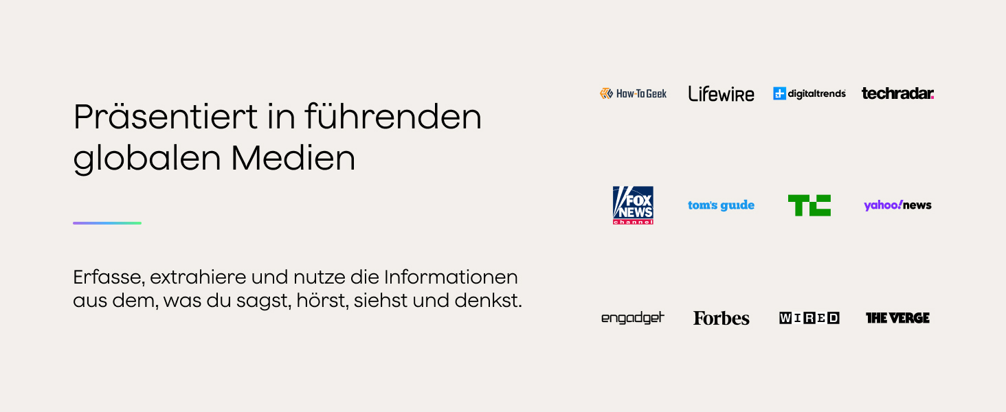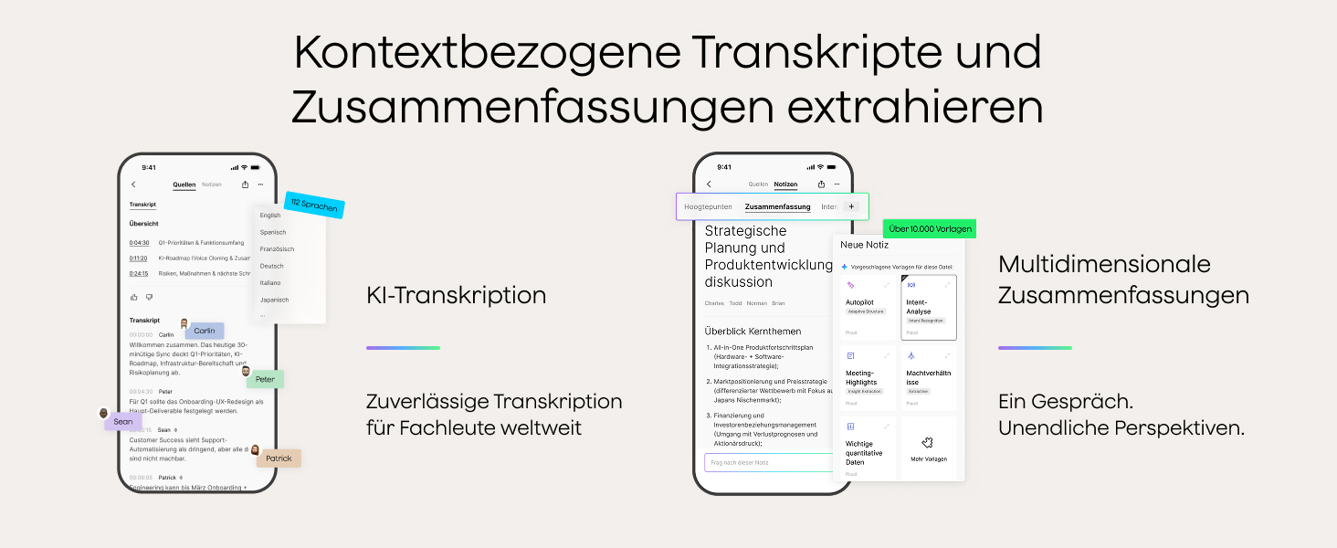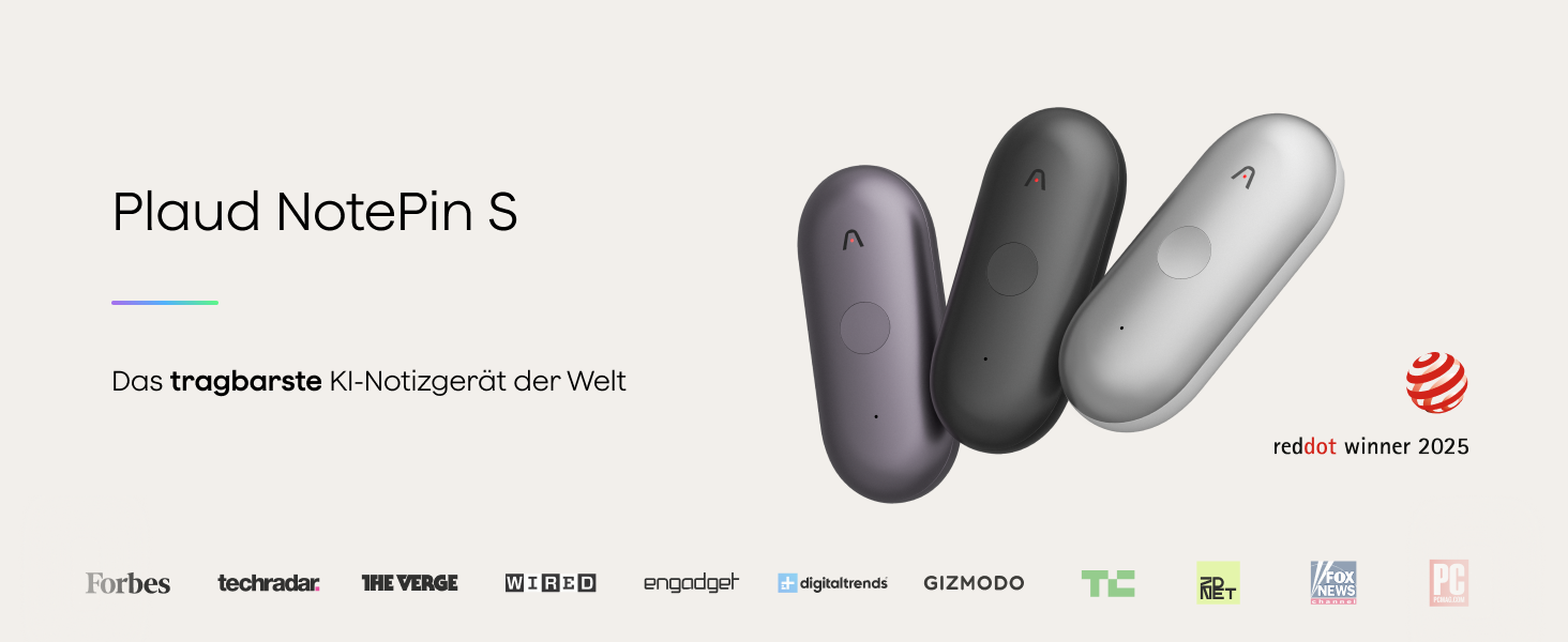 • Plaud Intelligence: Das KI Diktiergerät bietet Transkription in 112 Sprachen mit Sprecher-Labels und anpassbarem Vokabular. Generiere multidimensionale Zusammenfassungen mit über 10.000 Vorlagen, Mind-Maps und nahtloser Workflow-Integration.