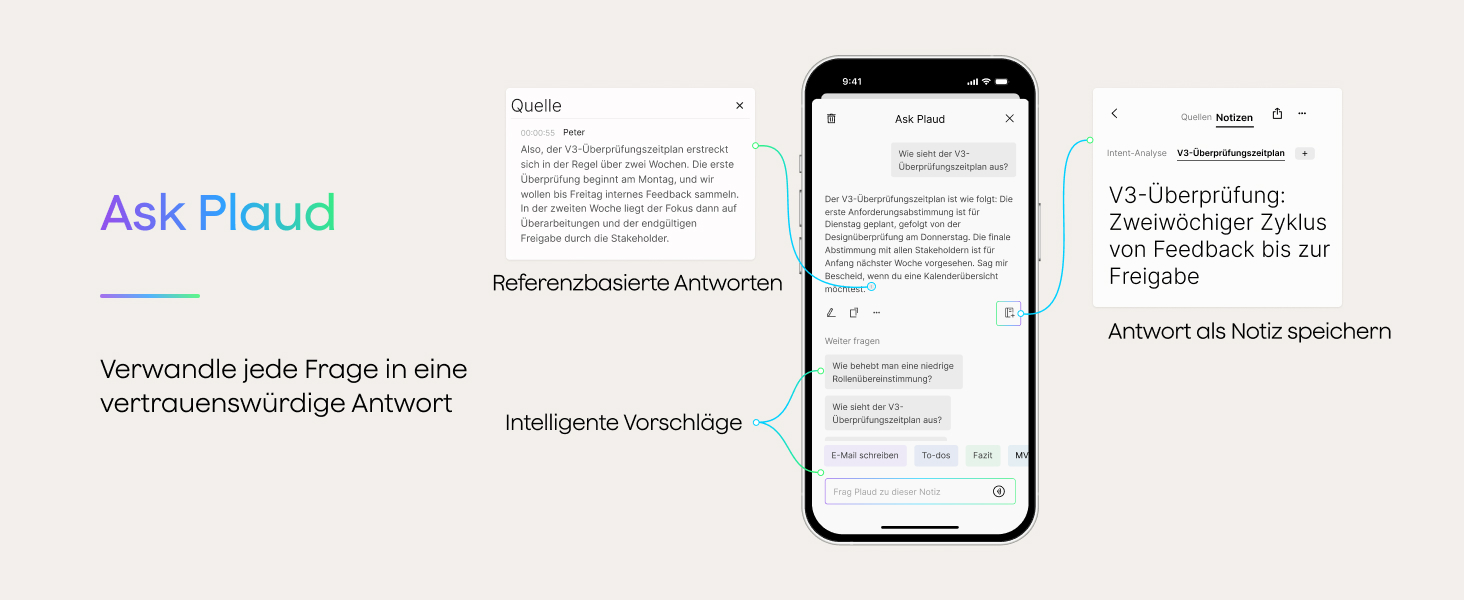 • Plaud Desktop: Greife mit jedem Plaud-Gerät auf Plaud Desktop zu, um Online- und persönliche Meetings aufzunehmen, und verwalte dann alle deine Tonaufnahmen in der Plaud App und auf Plaud Web.