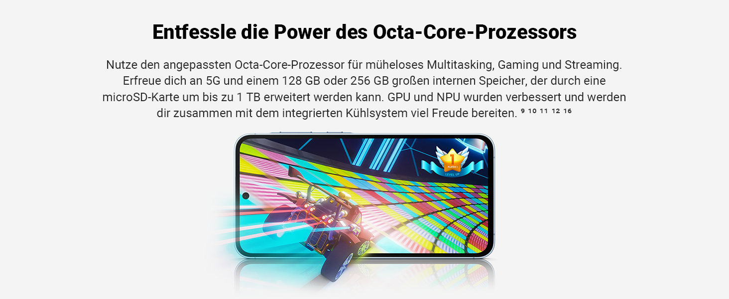 - Entfessle seine ganze Power: 5G-Unterstützung, angepasster Octa-Core-Prozessor und integriertes Kühlsystem mit großer Dampfkammer für grenzenloses Multitasking, Gaming und Streaming, Interner 128-GB- oder 256-GB-Speicher via microSD-Kartenslot um bis zu 1 TB erweiterbar