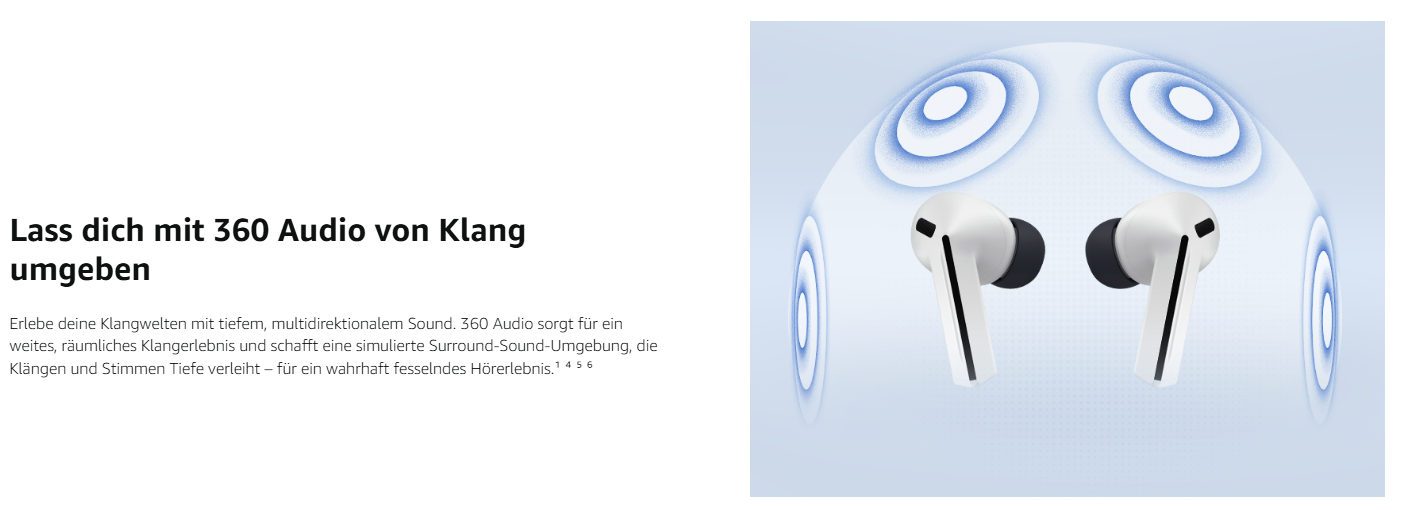 - AUSGEWOGENER KLANG & 360 AUDIO: Erlebe beeindruckende Klangqualität mit dynamischem und ausgewogenem Sound; Genieße volle Bässe und ausgewogene Details, die Tiefe verleihen, während 360 Audio für ein räumliches Klangerlebnis sorgt¹ ³ ⁴ ⁵ ⁶