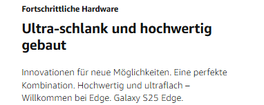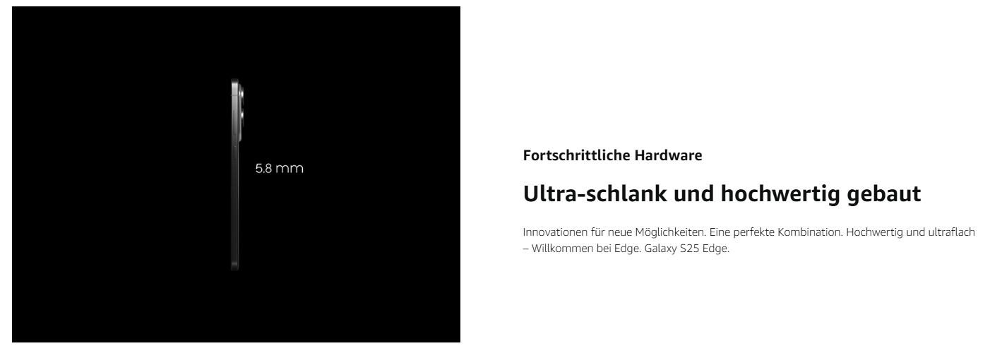 - Super dünn. Super stark: Ein durch Innovation geschaffenes schlankes Smartphone mit neuem Design - eine perfekte Kombination. Willkommen bei Edge. Galaxy S25 Edge.