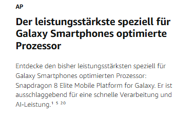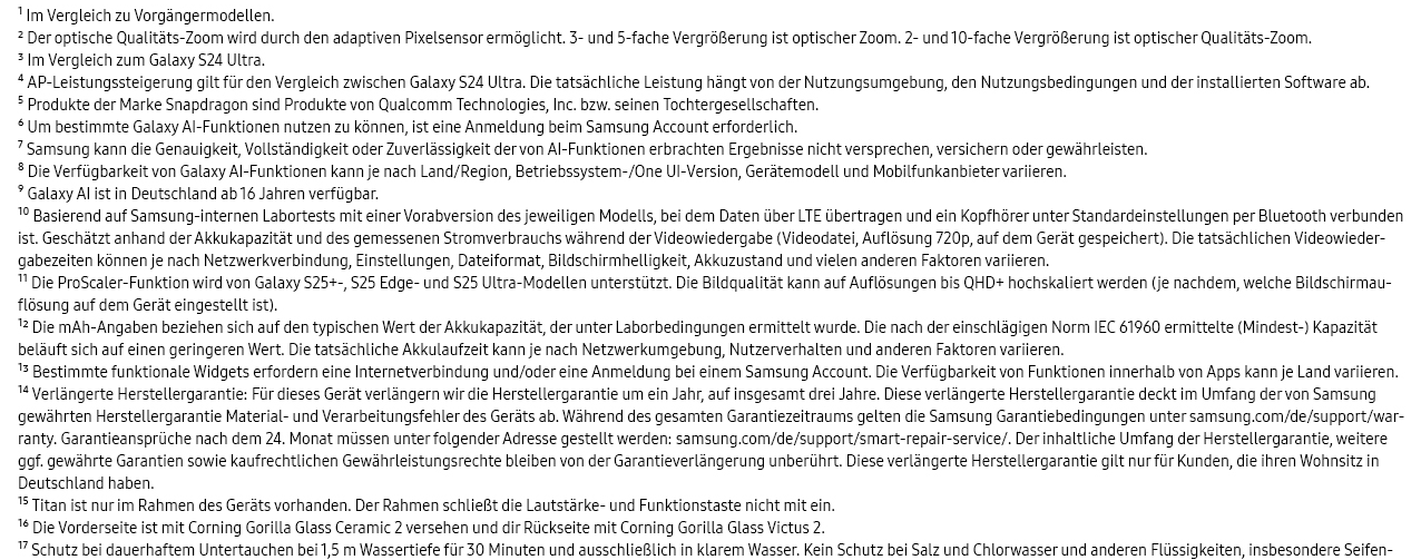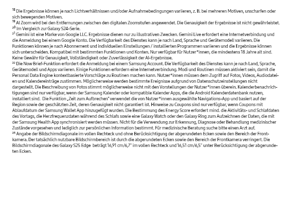 - Galaxy AI: Die nächste Ära der mobilen Galaxy AI - ein AI-Begleiter, der deinen Bedürfnissen einen Schritt voraus ist und den Alltag erleichtert, Die volle KI-Leistung der Galaxy S25-Serie, die in Samsungs aktueller Technologie integriert ist⁶ ⁷ ⁸ ⁹