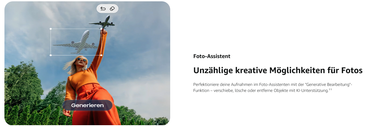 - Die Galaxy AI Funktionen unterstützen dich im Alltag: Dank intelligenterer, intuitiverer KI erhältst du Informationen in Echtzeit, kannst Inhalte mühelos bearbeiten und bekommst personalisierte Zusammenfassungen, damit du den Überblick behältst¹ ² ³ ⁴