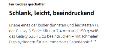 - Schlankes und leichtes Design: Mit nur 7,4 mm und 190 g ist es eines der bisher schlankesten und leichtesten FE der Galaxy S-Serie; Dank schlichtem Kameradesign und superschlanken Displayrändern genießt du ein immersives Seherlebnis in einem eleganten Gehäuse