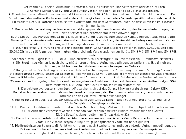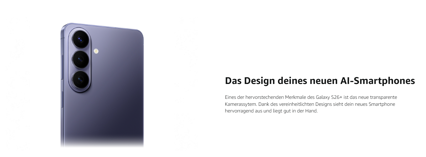 • GEKOMMEN, UM ZU BLEIBEN: Das Galaxy S26+ Android-Smartphone ist robust und haltbar – dank seinem widerstandsfähigen Gehäuse aus stabilem Armor Aluminum 2 und Corning Gorilla Glass Victus 2 kannst du auch in herausfordernden Umgebungen auf dem Laufenden bleiben, ohne dir direkt Sorgen um dein Handy machen zu müssen¹ ² ³
