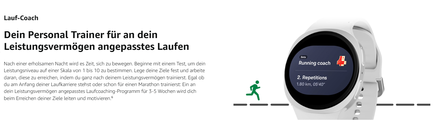 - Umfangreiches Fitness-Coaching: Ermittle dein Fitnesslevel und setze dir deine Fitnessziele, Trainiere mit einem persönlichen Coach und einem maßgeschneiderten Programm auf deinem Niveau, Tracke dank Exercise Tracking ohne großen Aufwand deine Bewegungen⁶ ⁷