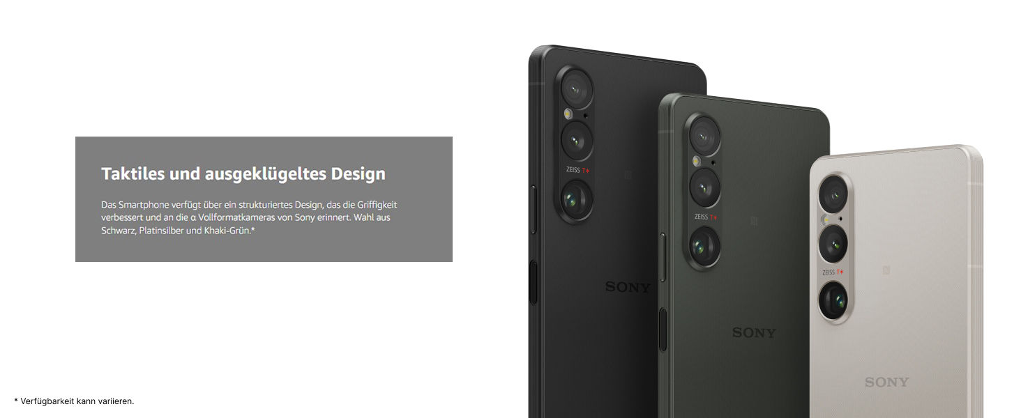 - Aufwändiges Design für die perfekte Kombination aus Form und Funktion Die innovative texturierte Oberfläche verbessert den Griff mit einem echten Kamera-Look und -Gefühl, das an die Vollformat-Alpha-Kameras von Sony erinnert. Es gibt besondere Farbvarianten, die den persönlichen Stil widerspiegeln: Schwarz, Platin-Silber und Khaki-Grün.* * Die Verfügbarkeit kann variieren.