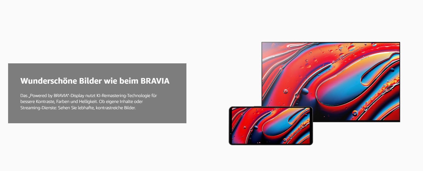 - Ein neues, intelligenteres und helleres Display Das Display des Xperia 1 VI ist Powered by BRAVIA und nutzt die AI-Remastering-Technologie, um Kontrast, Farbe und Klarheit zu verbessern. Diese Technologie funktioniert bei eigenen Inhalten und sogar bei Streaming-Diensten. Unglaublich: Das neue Display ist 1,5 Mal heller als das Vorgängermodell. Die Displayoptimierung bei Sonnenlicht dieses neuesten Sony Handys kümmert sich um die Sichtbarkeit des Bildschirms in grellen Umgebungen und hellt nicht nur das Bild auf, sondern führt auch eine KI-Bildverarbeitung durch, um überbelichtete Highlights zu vermeiden, indem die Bilder und die Umgebungshelligkeit in Echtzeit analysiert werden.